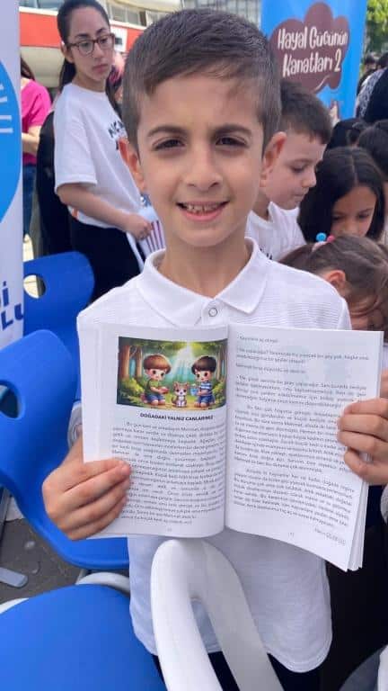 Kendi yazdıkları hikâyelerden oluşan kitaplarıyla edebiyat sahnesine adım atan öğrencilerimiz, imza masalarına oturup kitaplarını büyük bir gururla imzalarken, etkinlik alanında renkli ve duygusal anlar yaşandı. Uzayda geçen serüvenlerden dostluğu anlatan sıcacık hikâyelere kadar birbirinden yaratıcı metinler, katılımcılar tarafından büyük beğeni topladı.