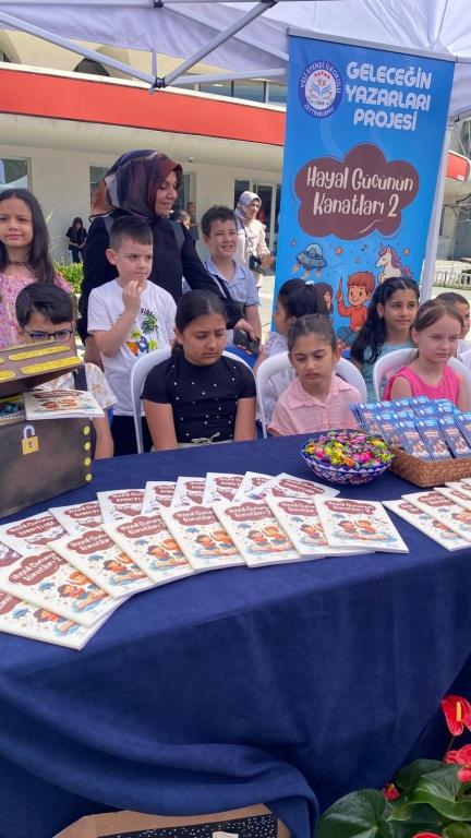 Veliler ve ziyaretçiler öğrencilerimizin hayal dünyasına hayran kalırken, minik yazarlarımız da “Bu benim ilk kitabım ama yazmaya devam edeceğim!” sözleriyle alkış topladı.
